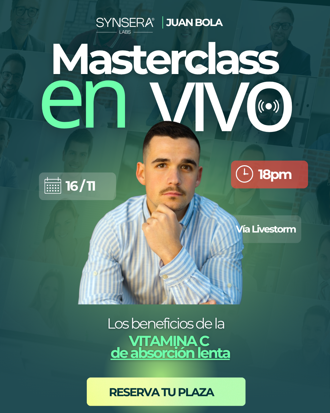 Tenemos el placer de invitarte a un webinar exclusivo con Juan Bola, reconocido experto en nutrición y salud, donde exploraremos a fondo la vitamina C de absorción lenta (o de liberación sostenida).